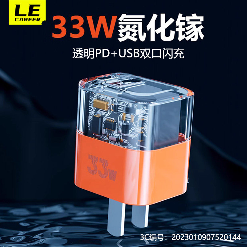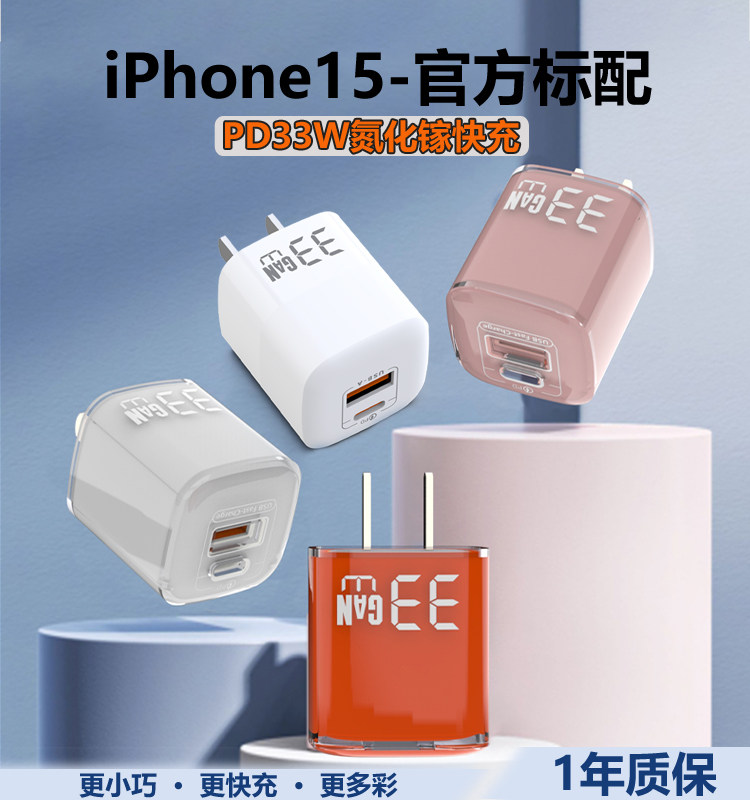 透明版33W氮化镓充电器PD快充充电头PPS适用于苹果15/14/13华为小米手机充电器