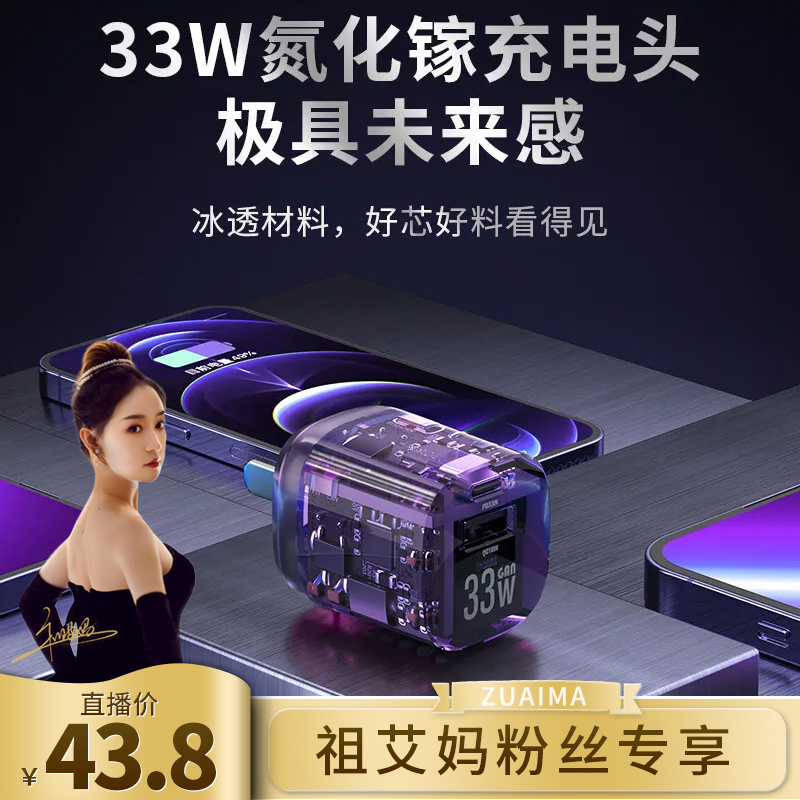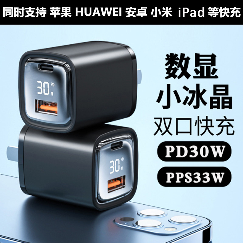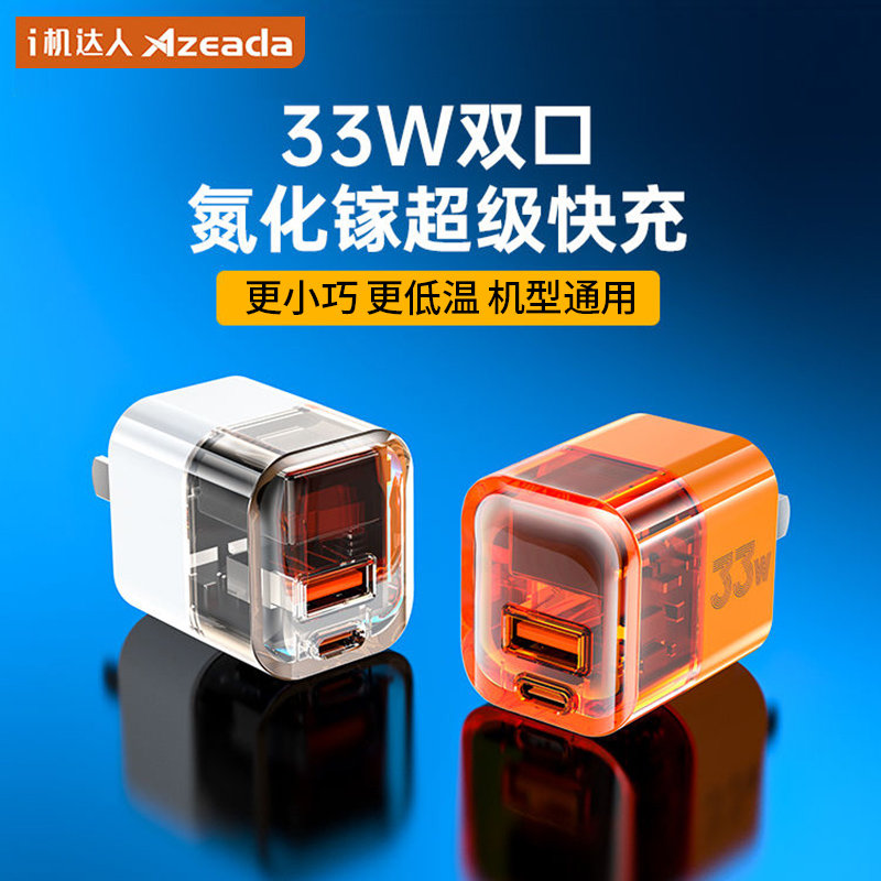 【祖艾妈专享】布洛克双口超级快充透明充电器充电头快充头33w氮化镓小冰块pd20w手机闪充头typec插头多口usb