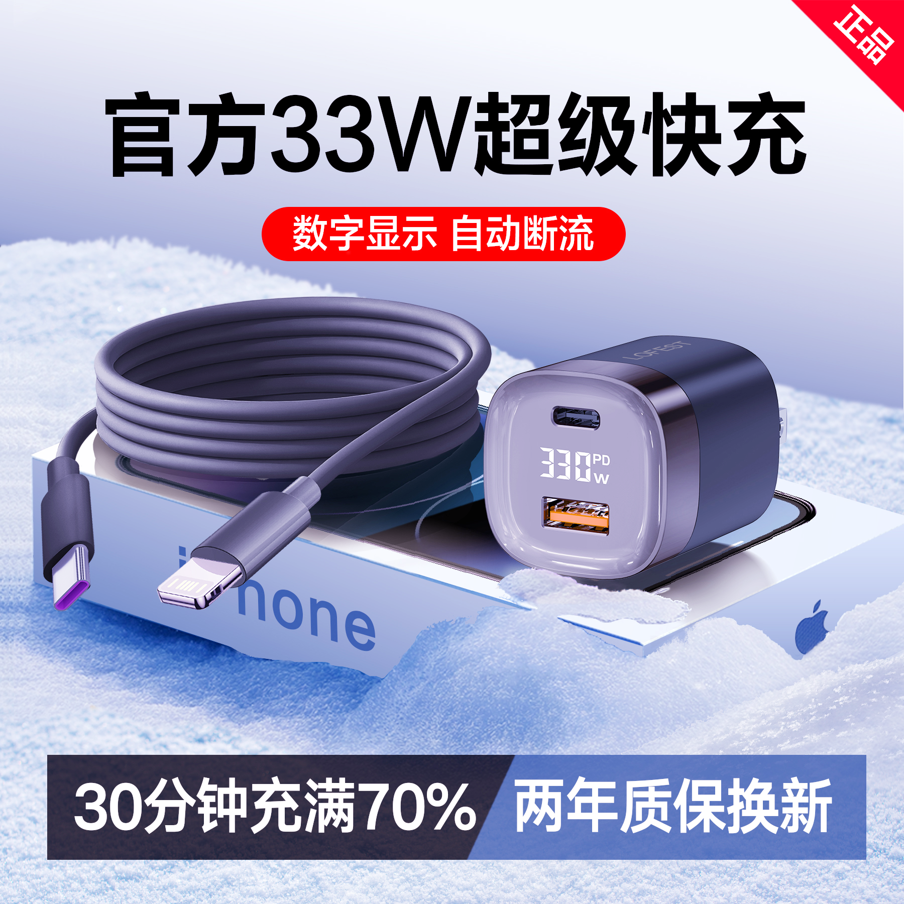 洛思特33W小冰块原装正品充电器适用iphone苹果15/12/13/14promax充电头ipad平板小米三星华为手机快充一套