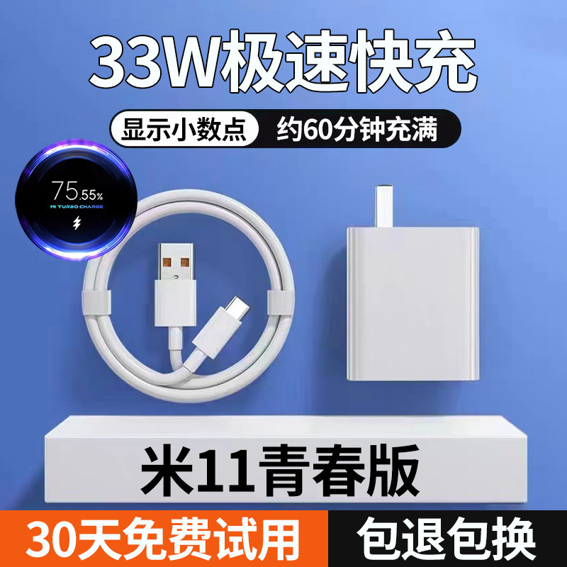 适用小米11青春版原装充电器33W快充插头Type-C接口数据线MI手机冲电线红米闪充显示小数点11v3a插头三十三瓦