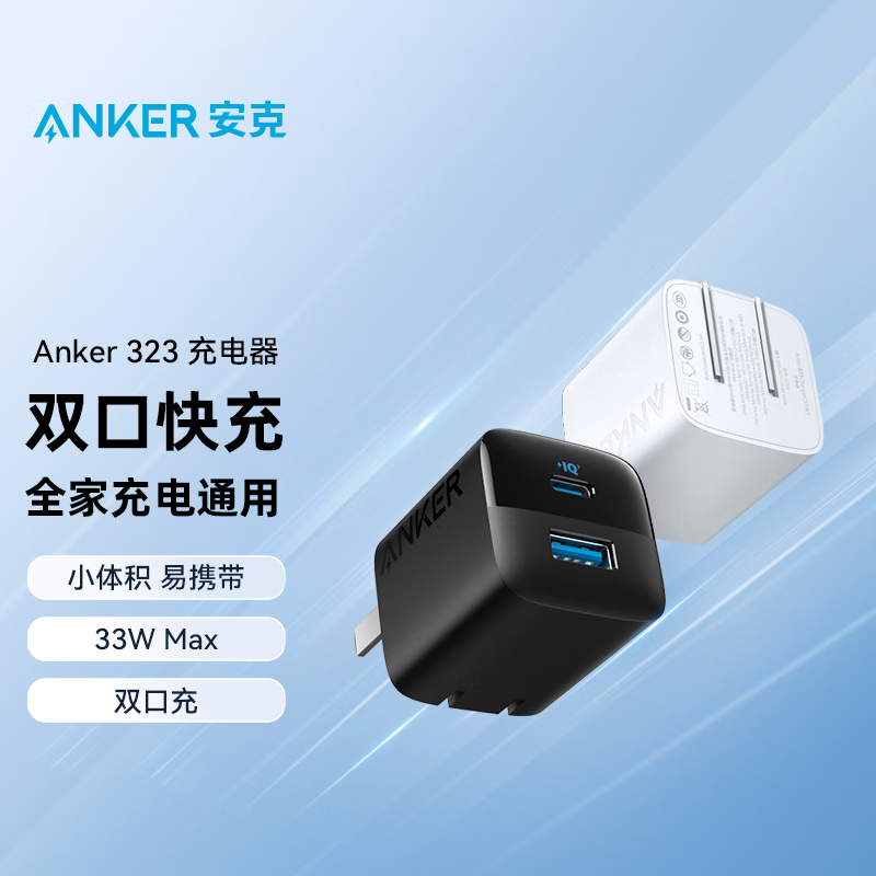 Anker安克33W双口快充充电器可折叠手机通用充电头插头多口适用iPhone14小米华为苹果安卓vivo平板ipad