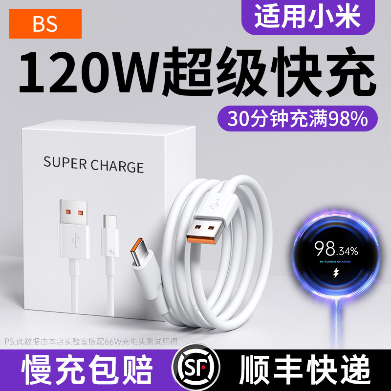 【120W闪充】Type-c数据线BS适用小米12/11/10s快充13红米K30k40k50pro手机note6/7typc充电器tpyec33/9tpc6a