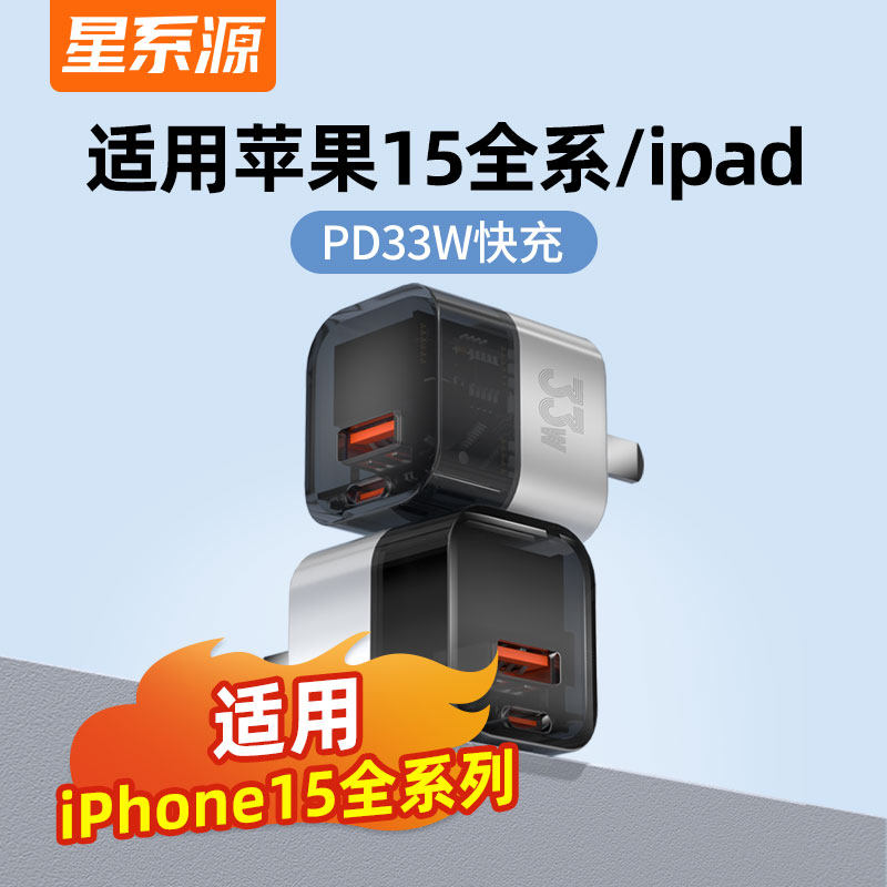 星系源33W快充适用于苹果15全系列氮化镓PD充电头适用于iPhone14Promax13pro12ipad插头Usbc口快速闪充充电器