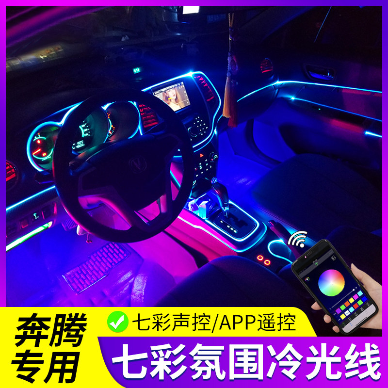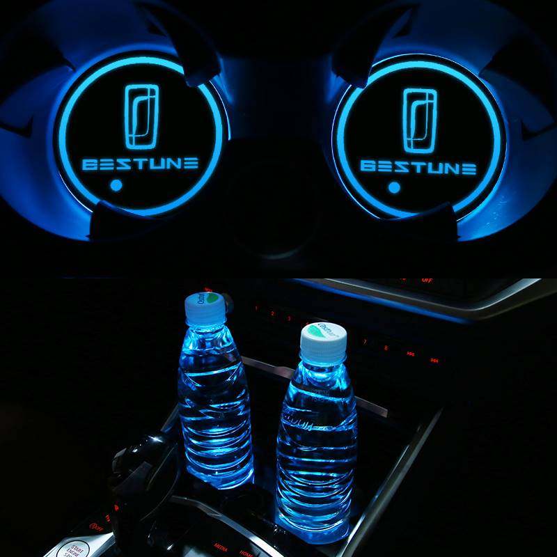 奔腾T33 T55 T77 B30 B50 B70汽车七彩发光水杯垫氛围灯内饰用品