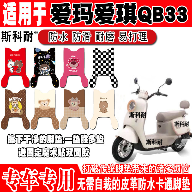 爱玛爱琪QB33电动车脚垫TDR2208Z可爱防水防滑TDR3234Z皮革脚踏垫
