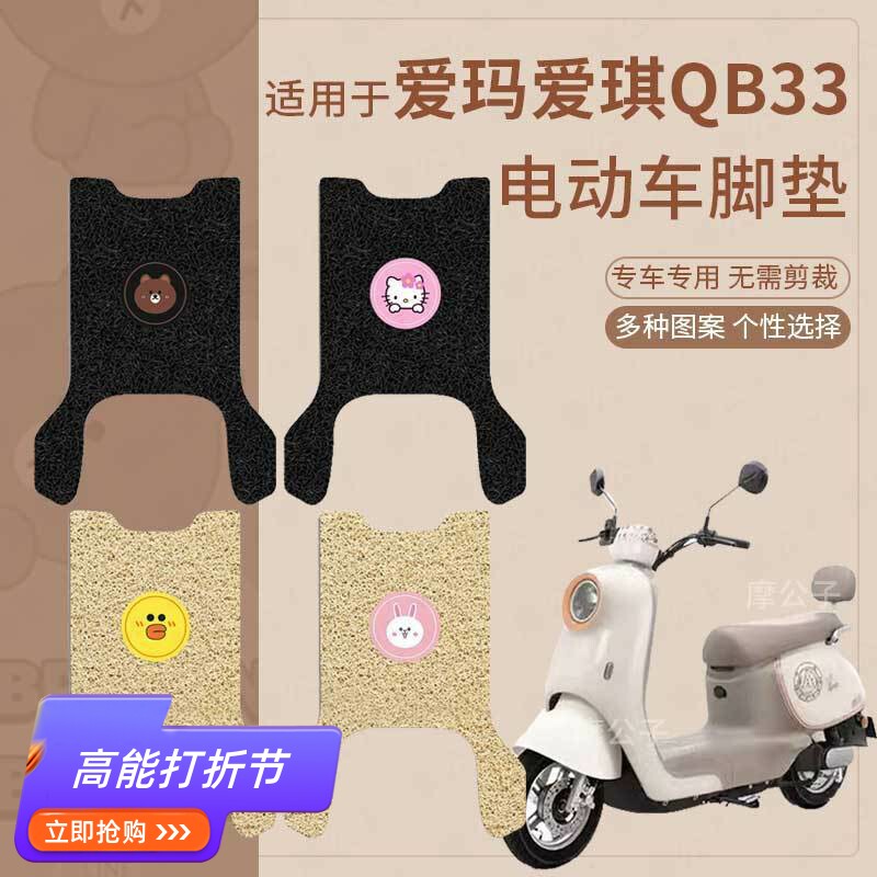 爱玛爱琪QB33电动车脚垫TDR2208Z防水防滑丝圈脚踩踏板垫卡通定制