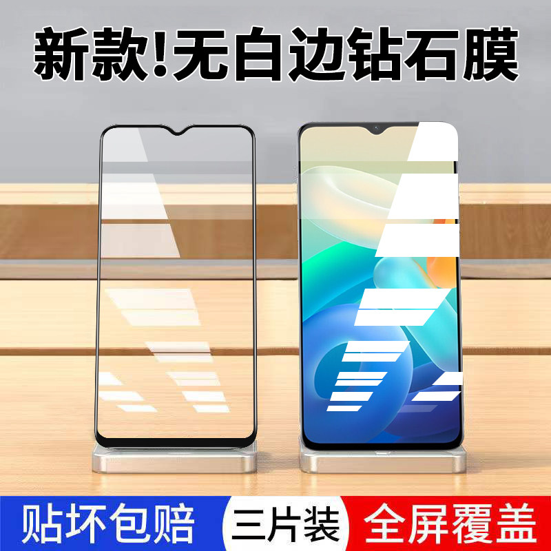 vivoy33s钢化膜全屏覆盖防蓝光V2166A手机膜屏保钻石黑边全包抗蓝光防摔防爆玻璃膜防滑防指纹超薄保护贴膜