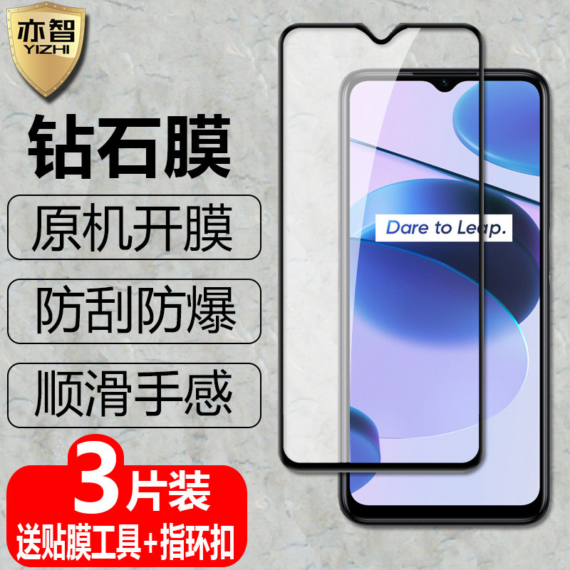 适用 Realme C35海外版黑边钢化膜真我C33防爆钢化膜RMX3511全屏覆盖RMX3624手机高清抗指纹防蓝光钻石保护贴