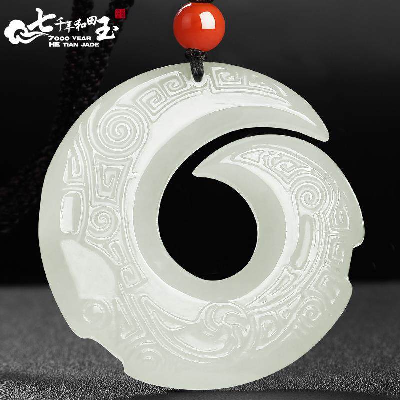 7000年和田玉平安扣吊坠男女挂绳双面雕刻如意乾坤玉牌子情侣玉佩