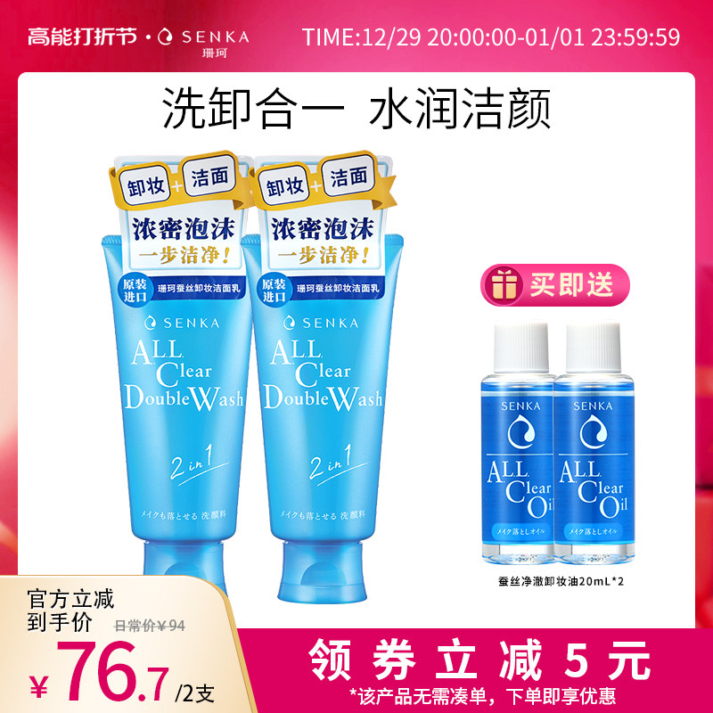 SENKA珊珂洗面奶蚕丝保湿卸妆洁面膏女温和清洁卸淡妆洗卸合一