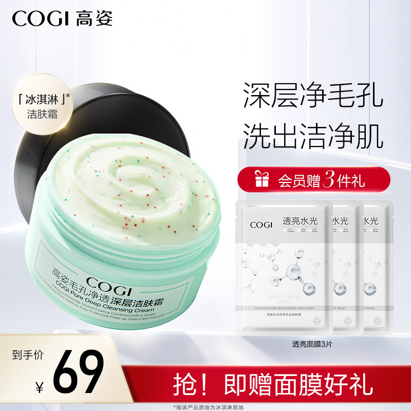 高姿毛孔净透深层洁肤霜清洁霜女脸部污垢卸妆面部清洁膏官方旗舰