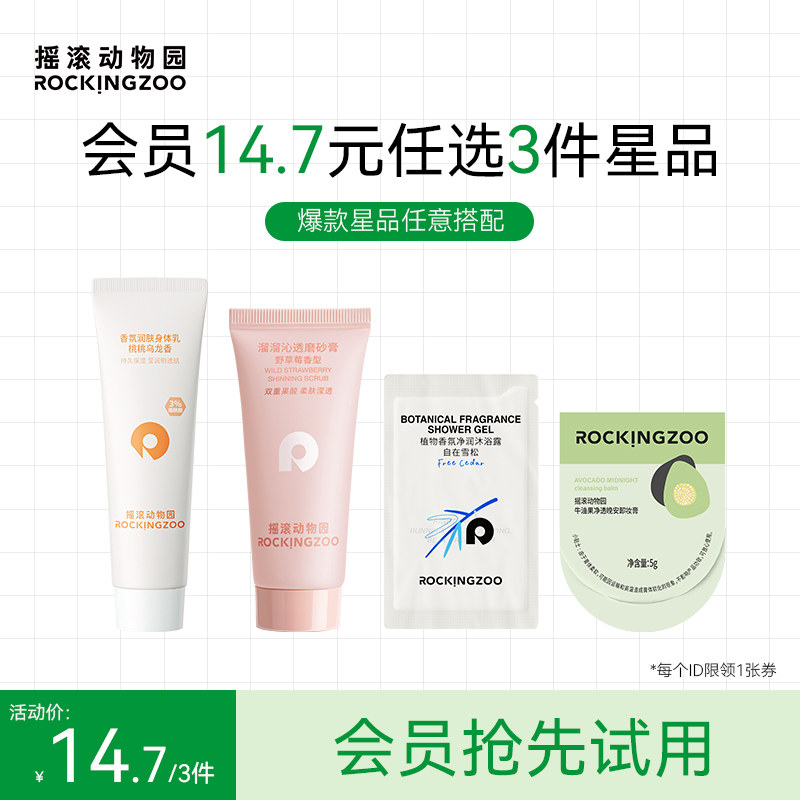 【会员优先购】14.7元任选3件摇滚动物园卸妆膏小样身体乳护手霜