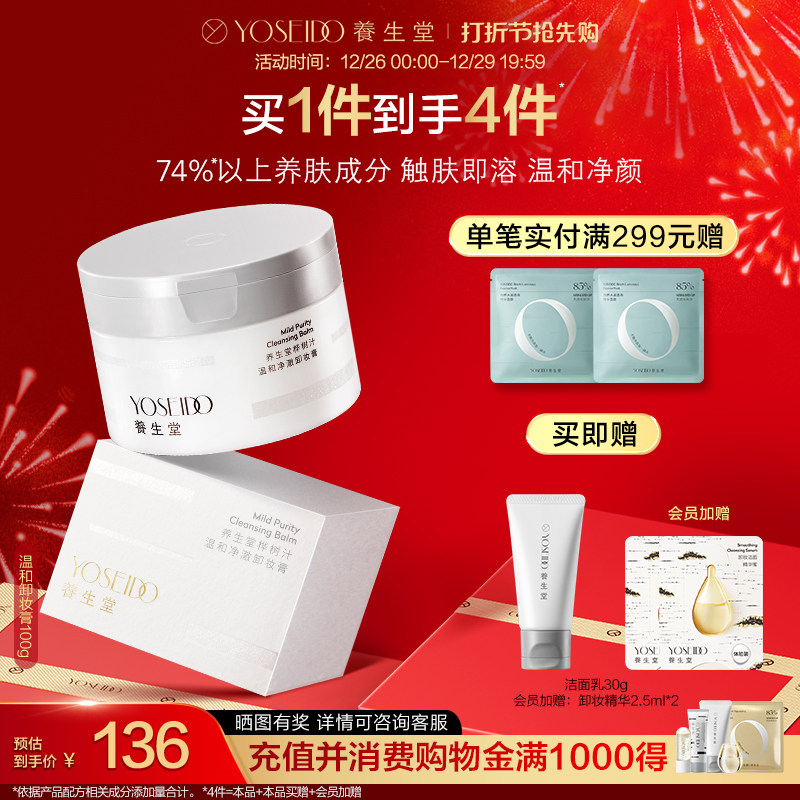 YOKIA悦可雅卸妆膏植萃精油深层清洁温和卸妆桔香以油养肤100g