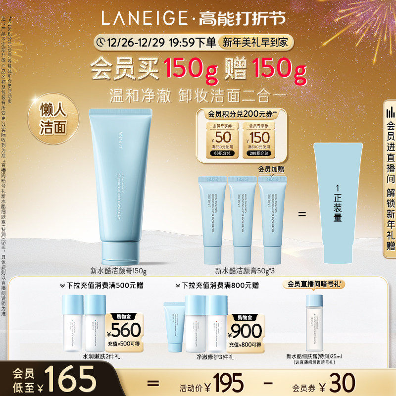 Laneige/兰芝洁面新水酷透明质酸嘭润洁颜膏150ML*1支卸妆控油