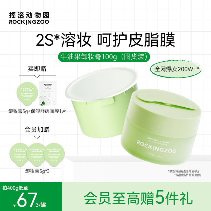 摇滚动物园牛油果卸妆膏女眼唇卸妆油脸部易乳化温和深层清洁正品