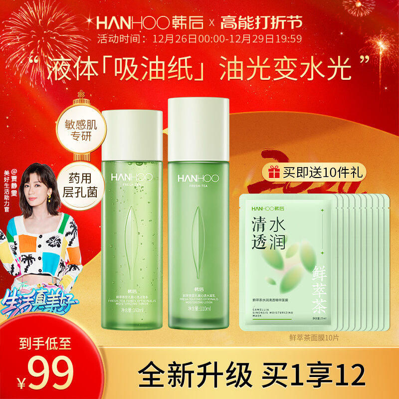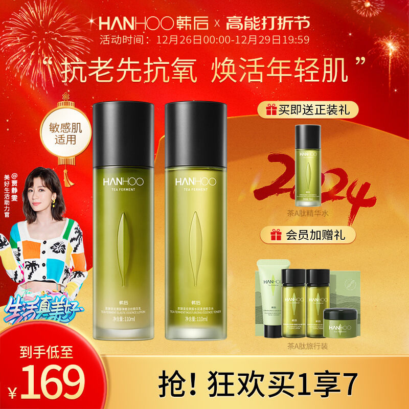 韩后茶A肽水乳套装抗初老抗皱紧致补水保湿秋冬抗氧化提亮护肤品