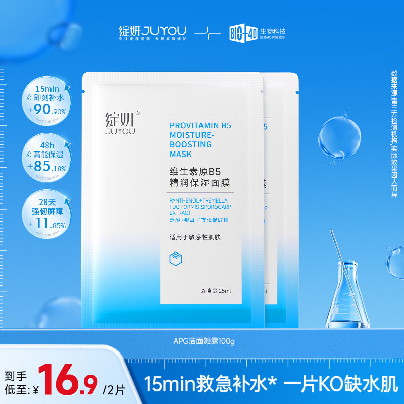 绽妍维生素b5面膜 补水保湿 舒缓修护屏障 敏感肌护肤品2片BY
