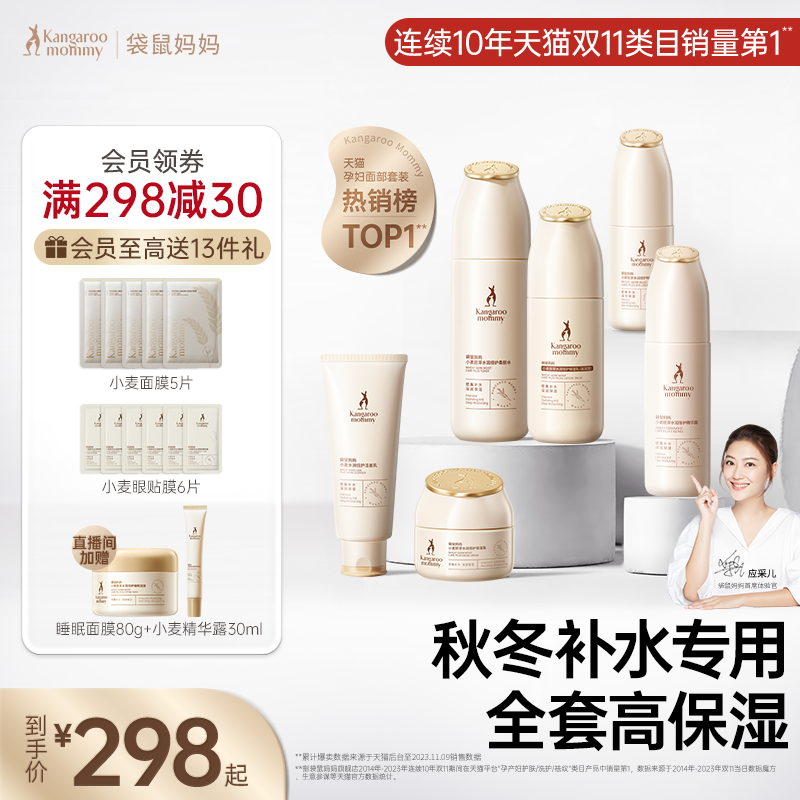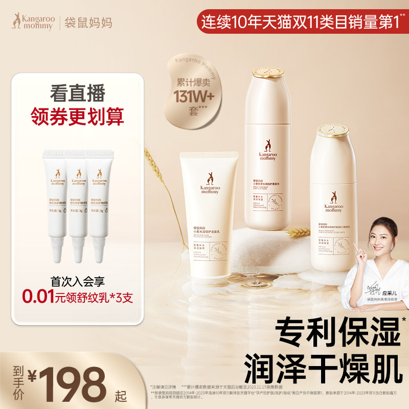 袋鼠妈妈准孕妇护肤品可用补水保湿化妆品专用小麦秋冬季套装水乳
