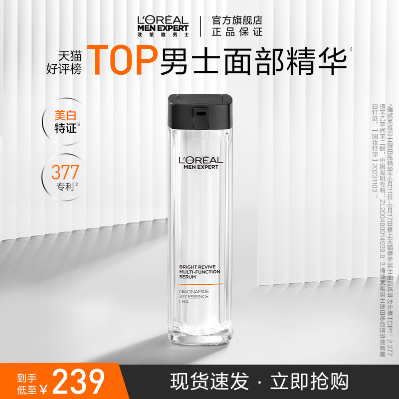 欧莱雅男士耀白瓶精华液烟酰胺377美白焕亮淡化痘印乳液护肤品男