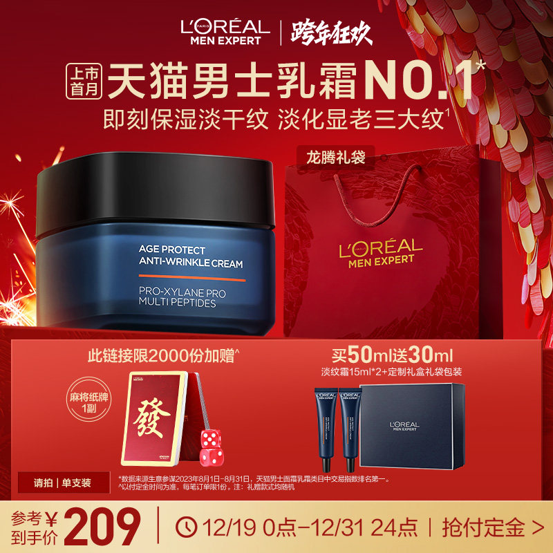 【新年礼物】欧莱雅男士淡纹霜补水秋冬季面霜乳液紧致抗老护肤品