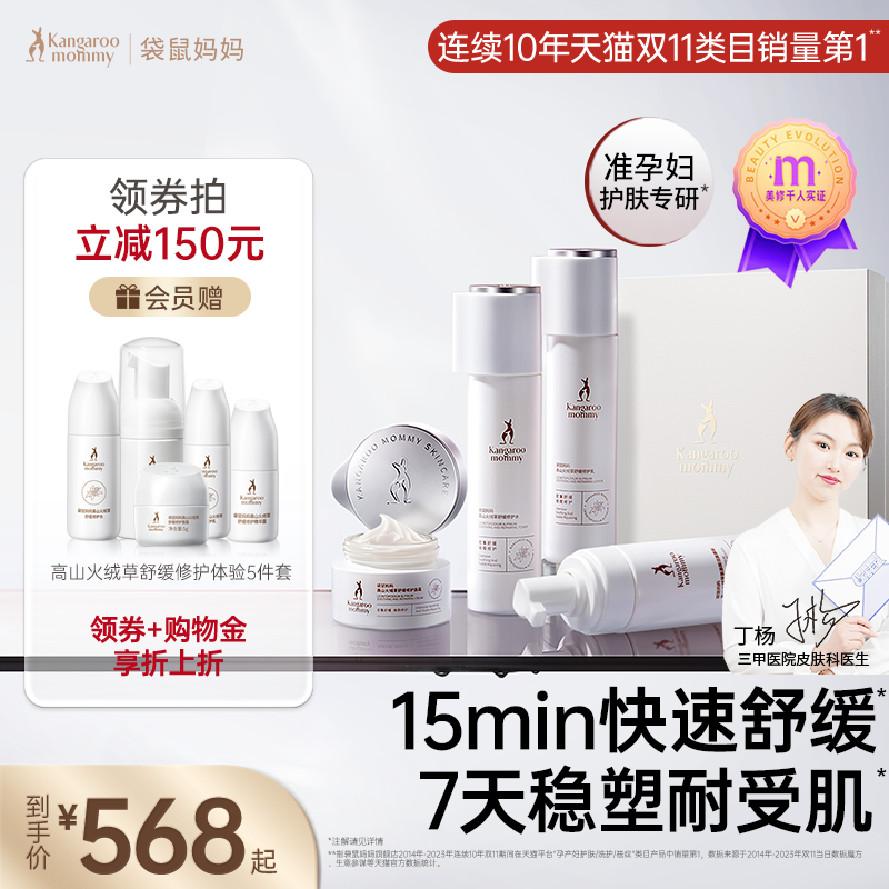 袋鼠妈妈修护水乳准孕妇护肤品高山火绒草套装补水保湿专用化妆品