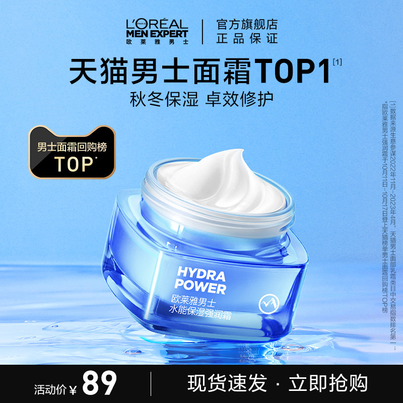 欧莱雅男士面霜润肤霜补水保湿乳液擦脸油秋冬季滋润乳脸部护肤品
