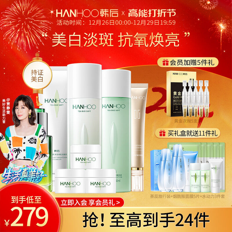 韩后茶蕊护肤品套装美白淡斑补水保湿水乳女化妆品爽肤水嫩白面霜