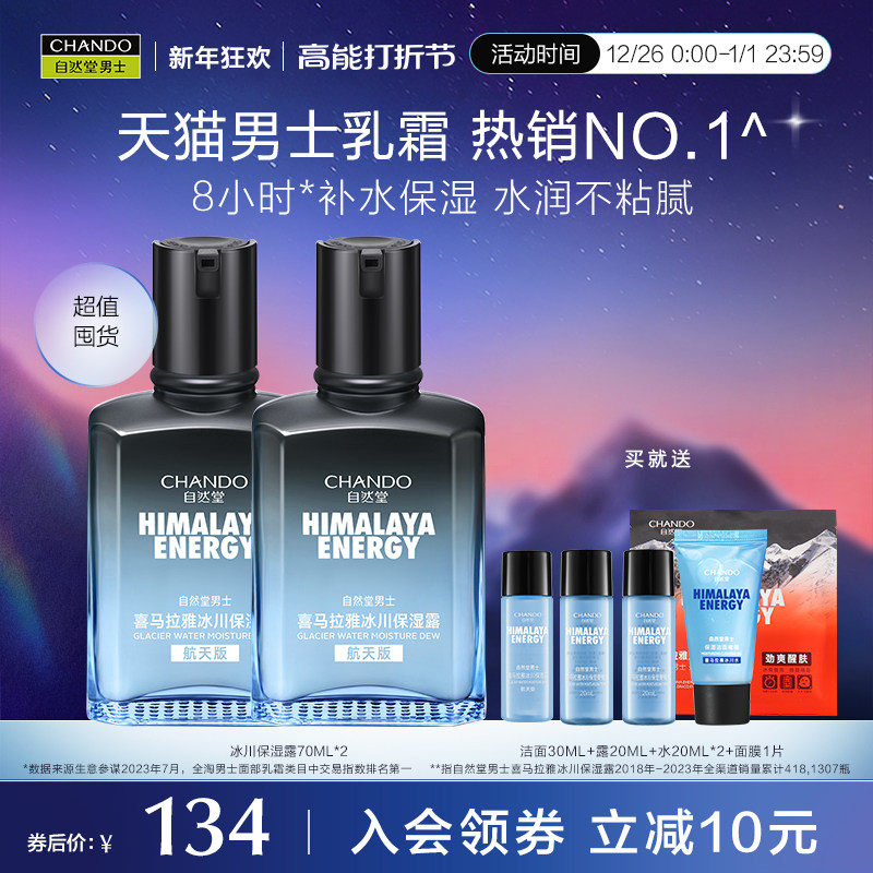 自然堂男士冰川露8小时长效保湿精华水乳护肤品润肤乳清爽不粘腻