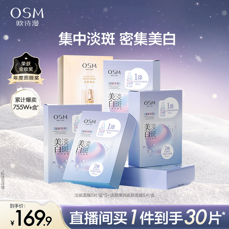 欧诗漫珍珠美白淡斑面膜补水保湿烟酰胺提亮熬夜护肤品化妆品贴片