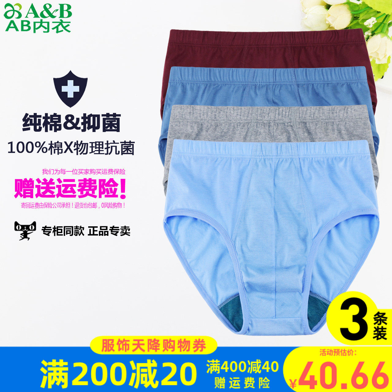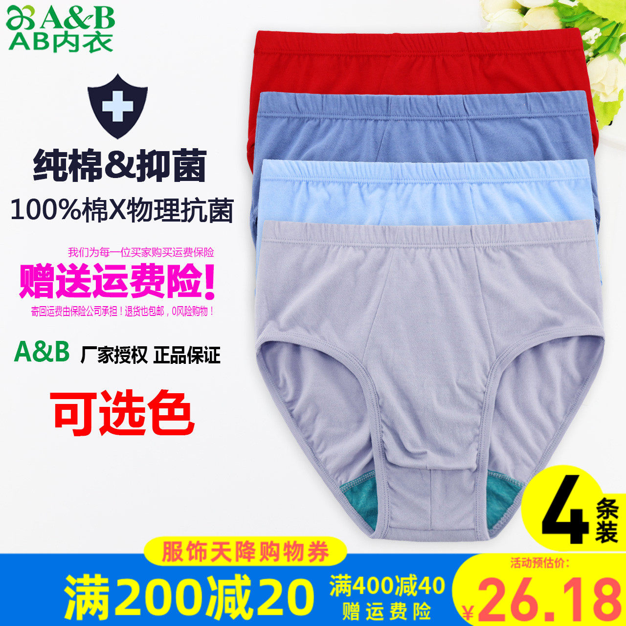 ab内裤【4条装】精梳纯棉银离子抗菌舒适透气中腰男士三角裤E585