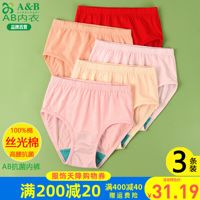 ab内衣【3条装】纯棉中老年高腰抗菌宽松大码全棉奶奶内裤2608