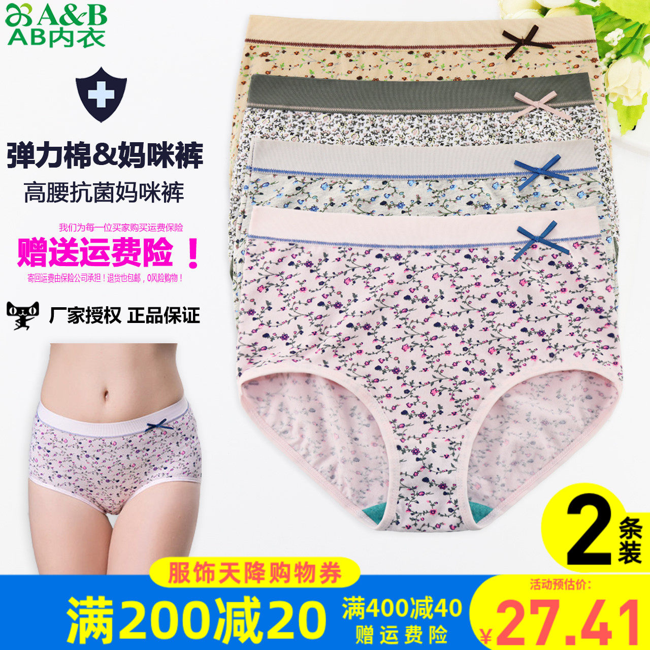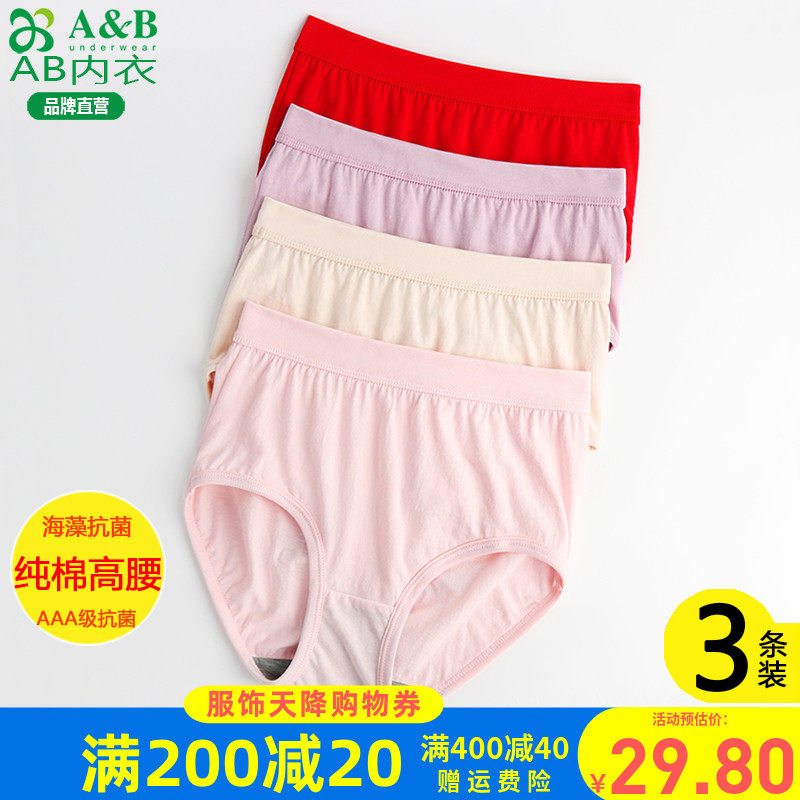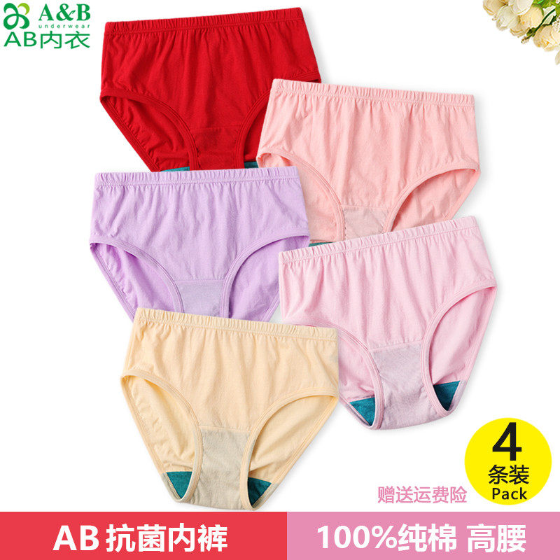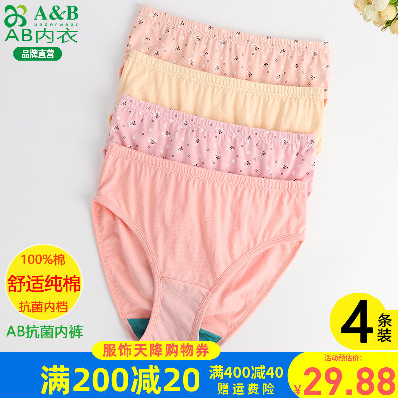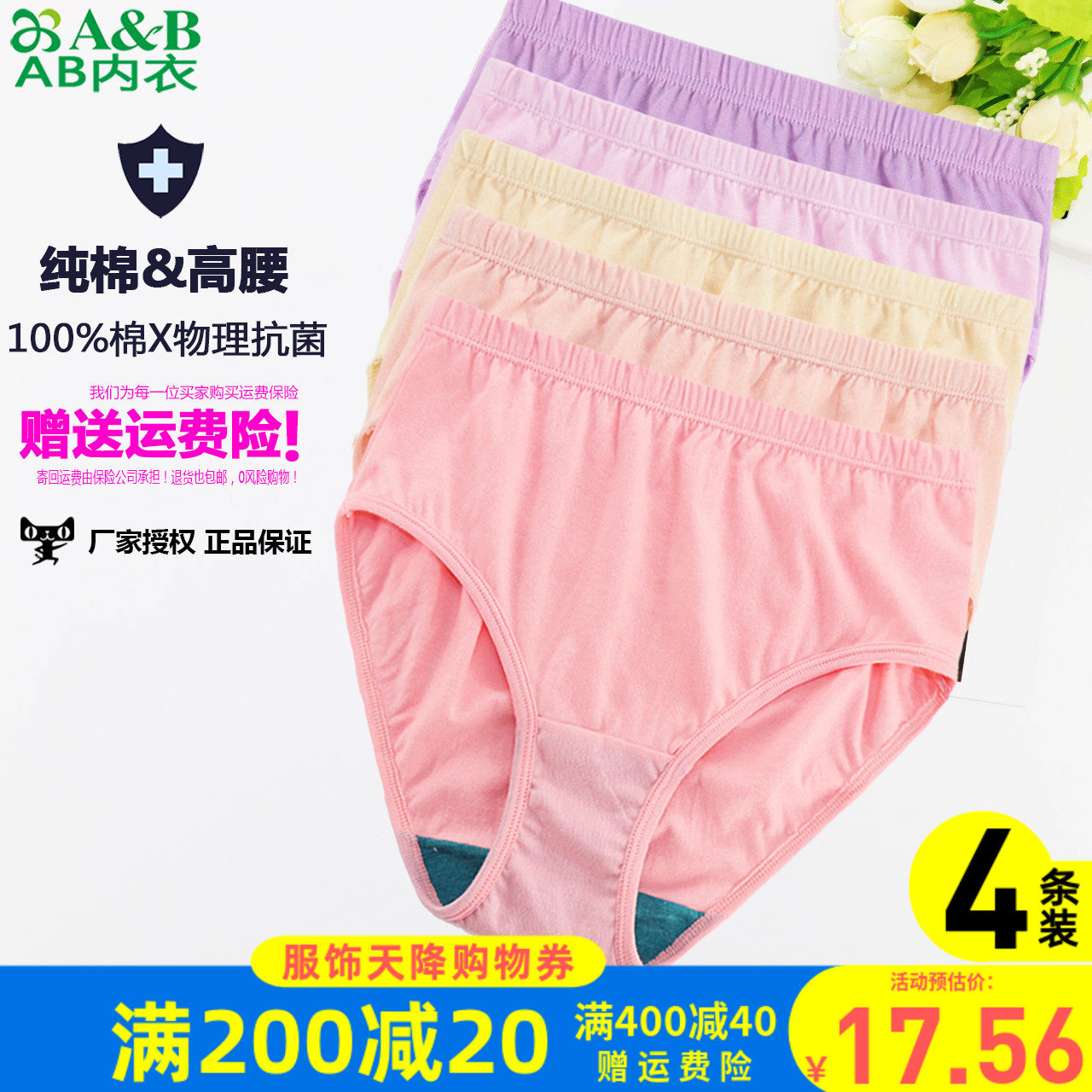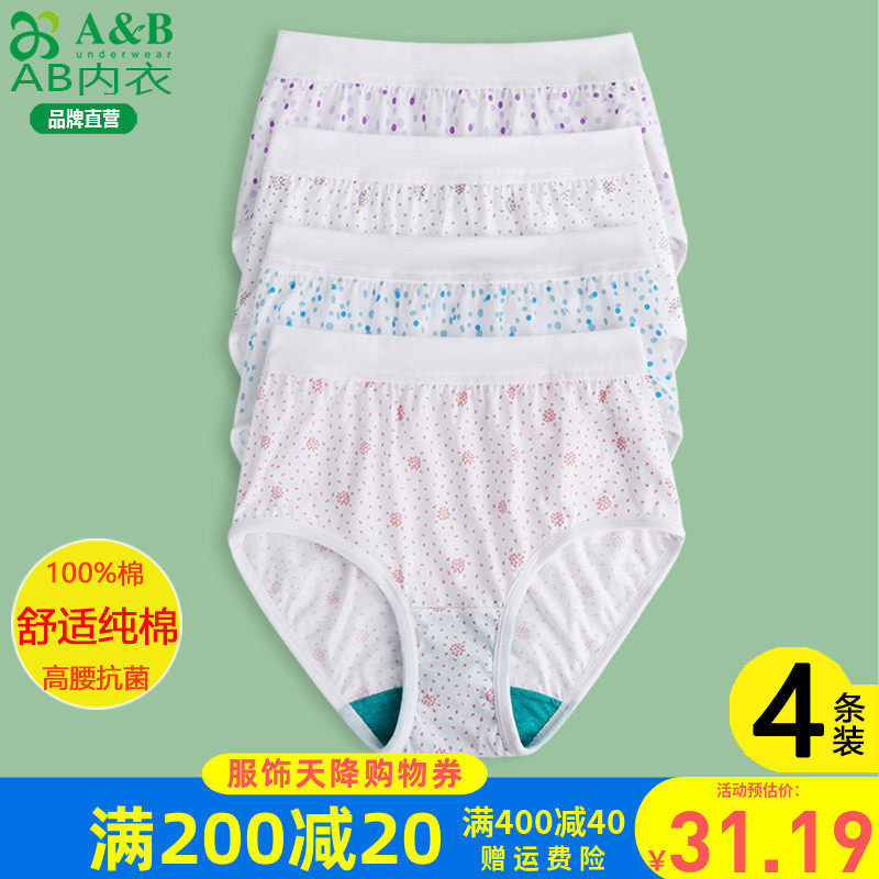 AB内衣4条女士纯棉宽松高腰抗菌三角裤舒适透气大码妈咪内裤2822