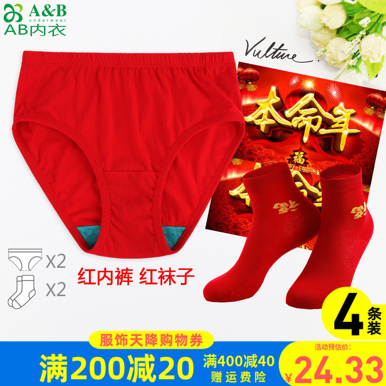AB内衣 正品 纯棉丝光女士三角裤大红本命内裤1822