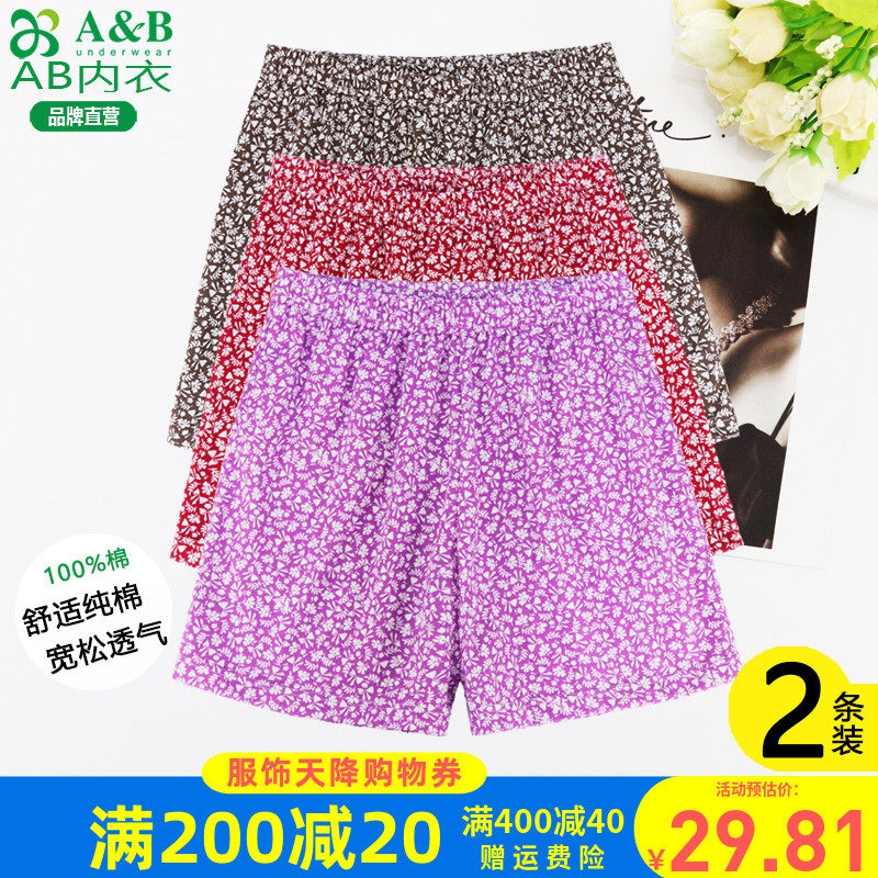 ab内裤女纯棉高腰印花抗菌短裤100%棉宽松大码中老年妈妈内裤0182