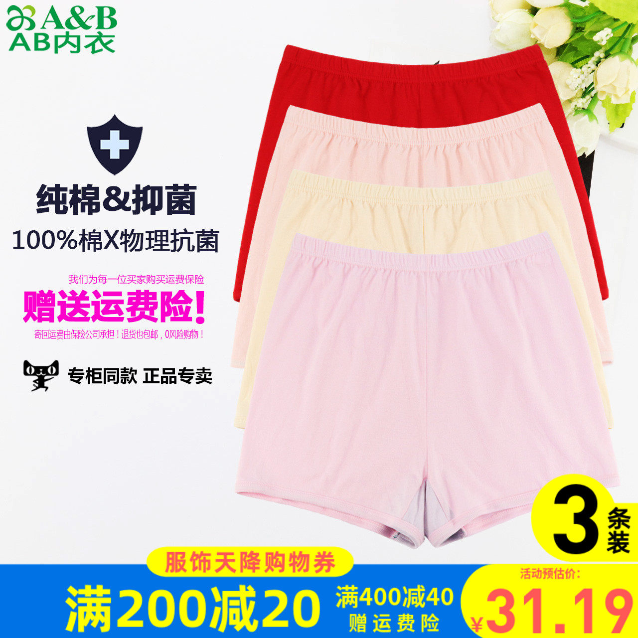 ab内衣【3条装】女士平脚内裤弹力棉中高腰女平角短裤A101