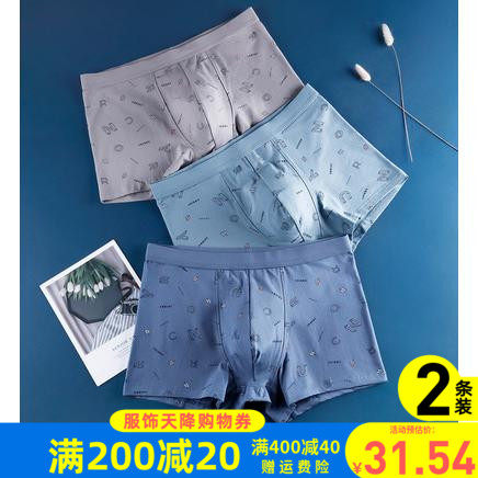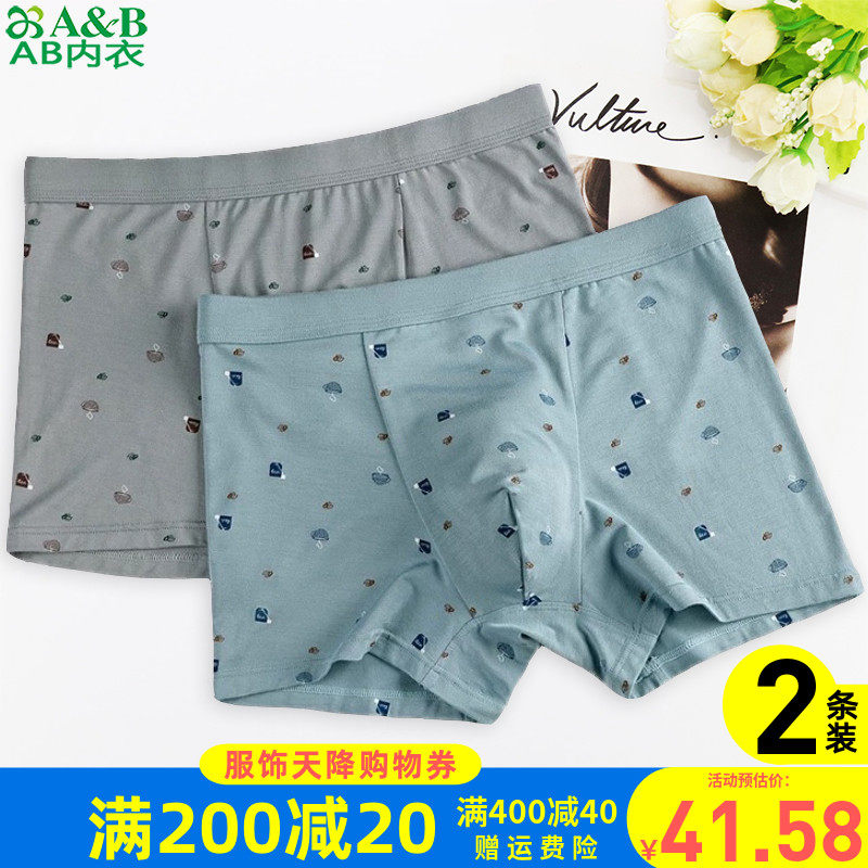 A&Bab内裤【2条装】男士平脚裤莫代尔印花抗菌中腰四角裤M301