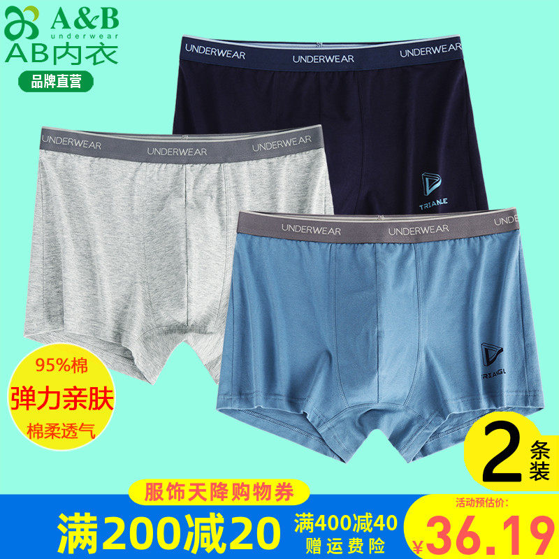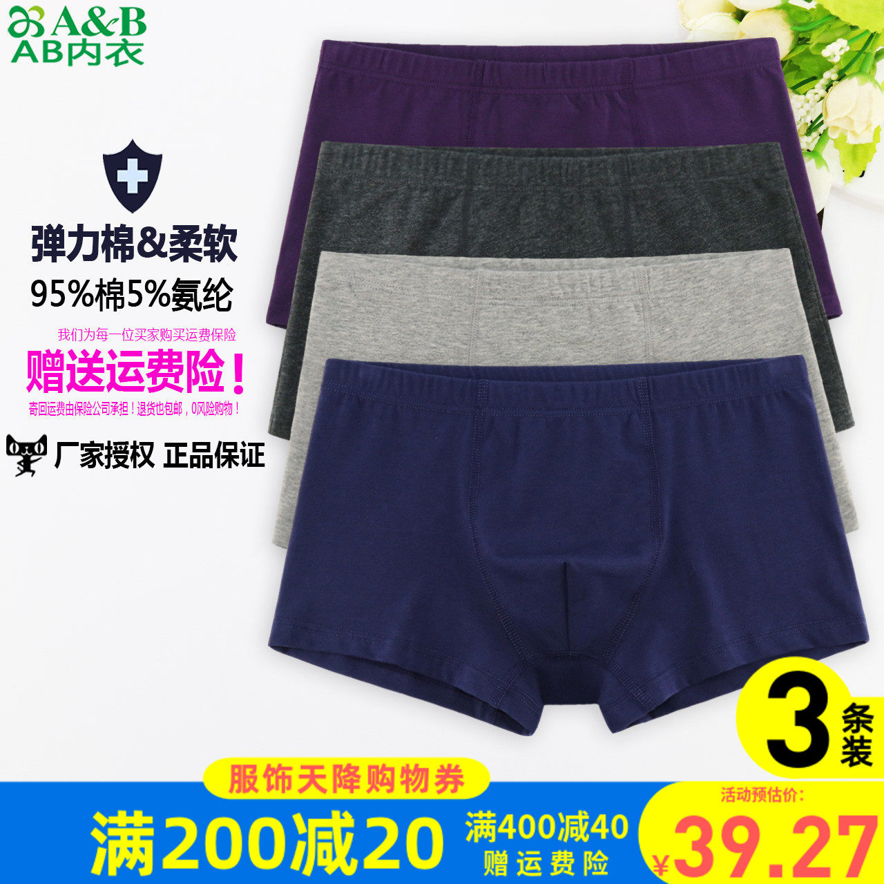 ab内衣男纯棉内裤弹力棉棉氨青年中腰四角裤大码贴身平角裤头L601