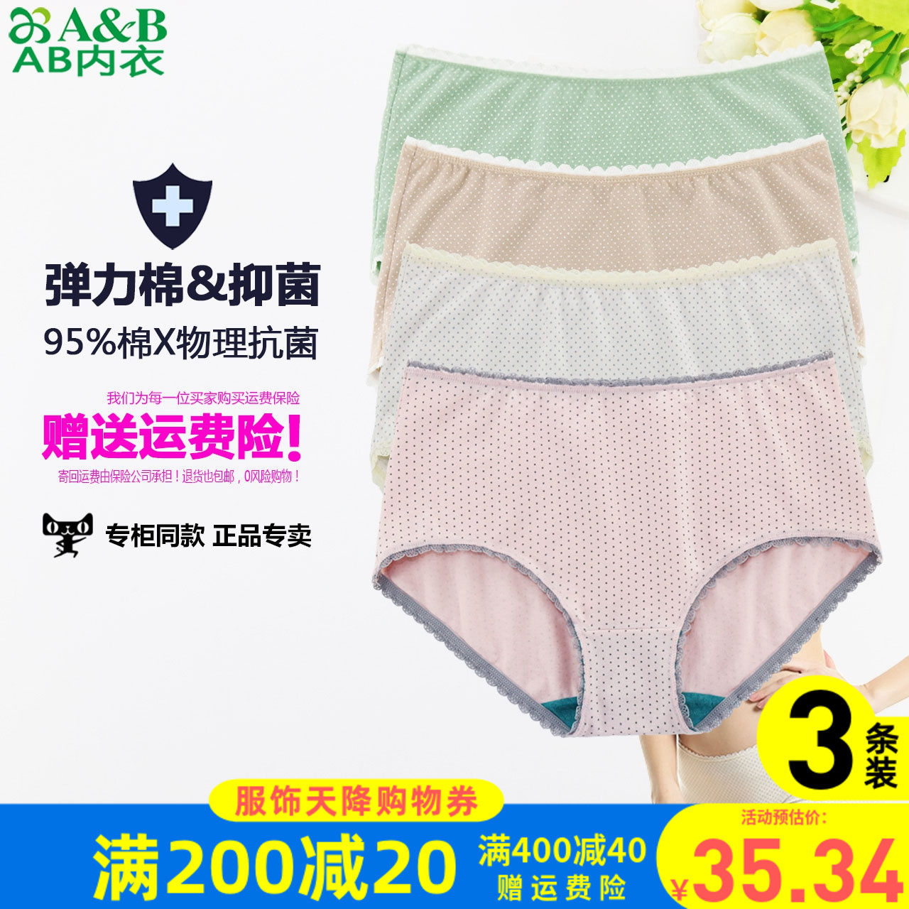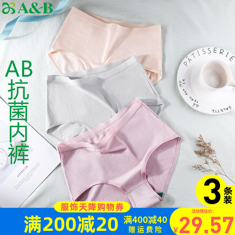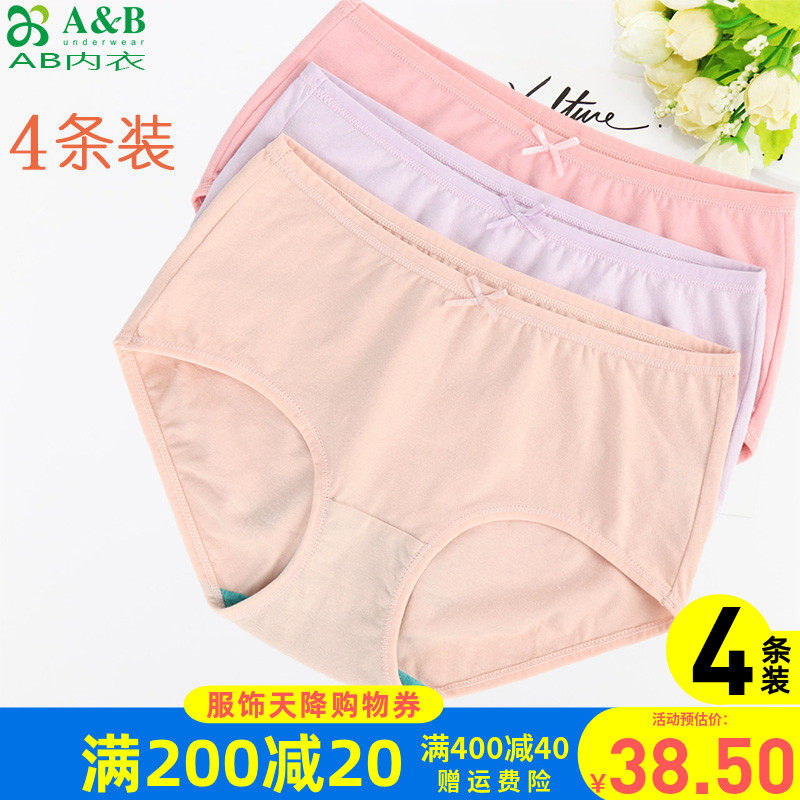 AB内衣 专柜正品 AB纯棉内裤 透气女士中高腰三角裤 4-5条装2822