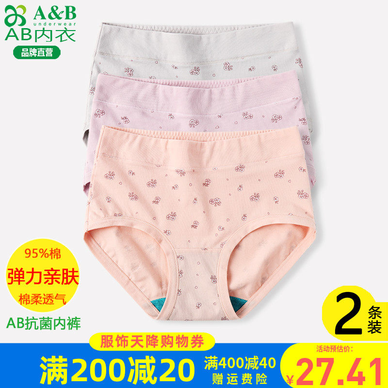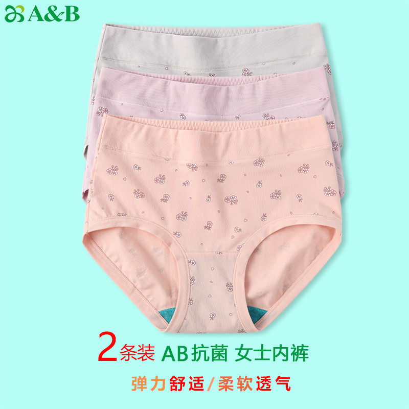 ab内衣【2条装】女士平脚内裤弹力棉抗菌中高腰女生平角短裤1128