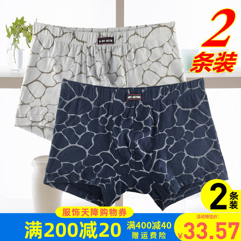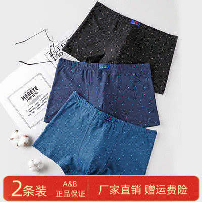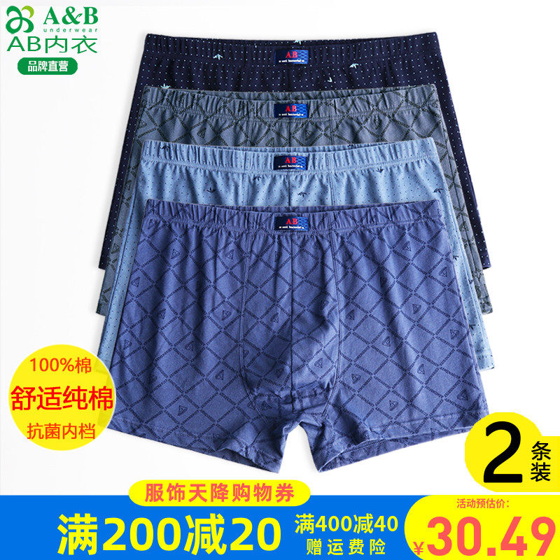 AB内衣中年男士内裤舒适型抗菌中高腰印花平角裤棉氨内裤2条装