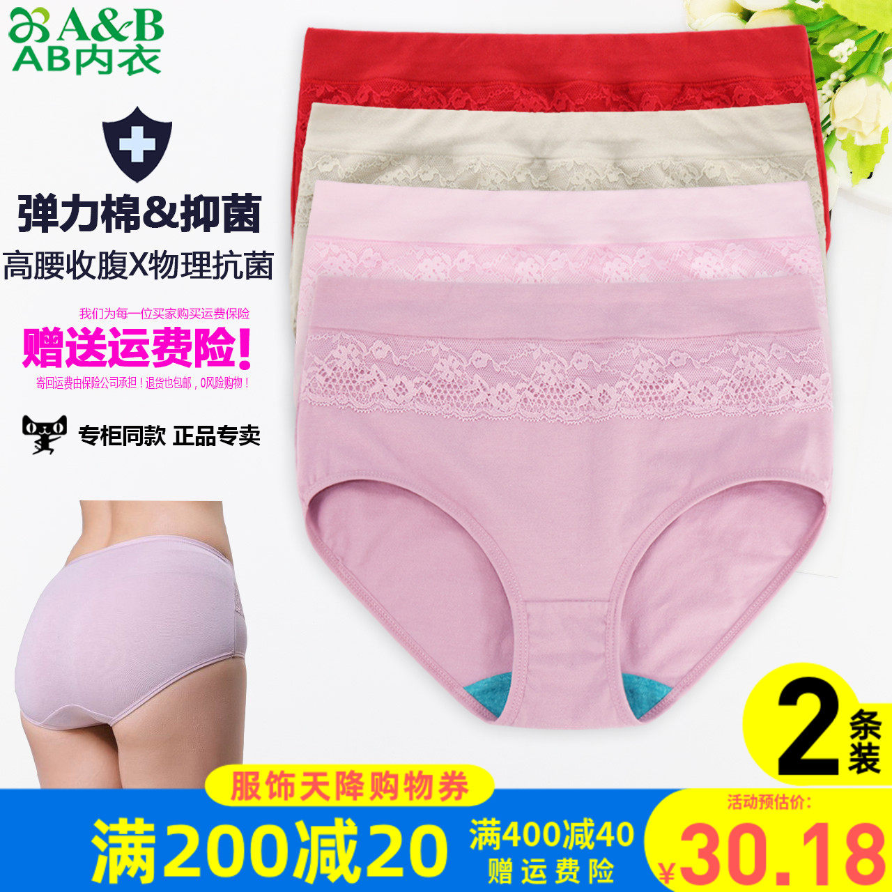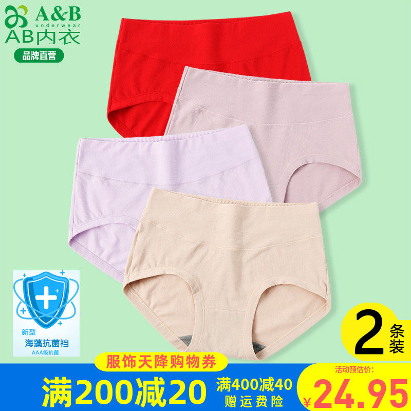 2条装 AB内衣弹力棉抗菌收腹提臀女式高腰收腹裤小平角内裤 1880