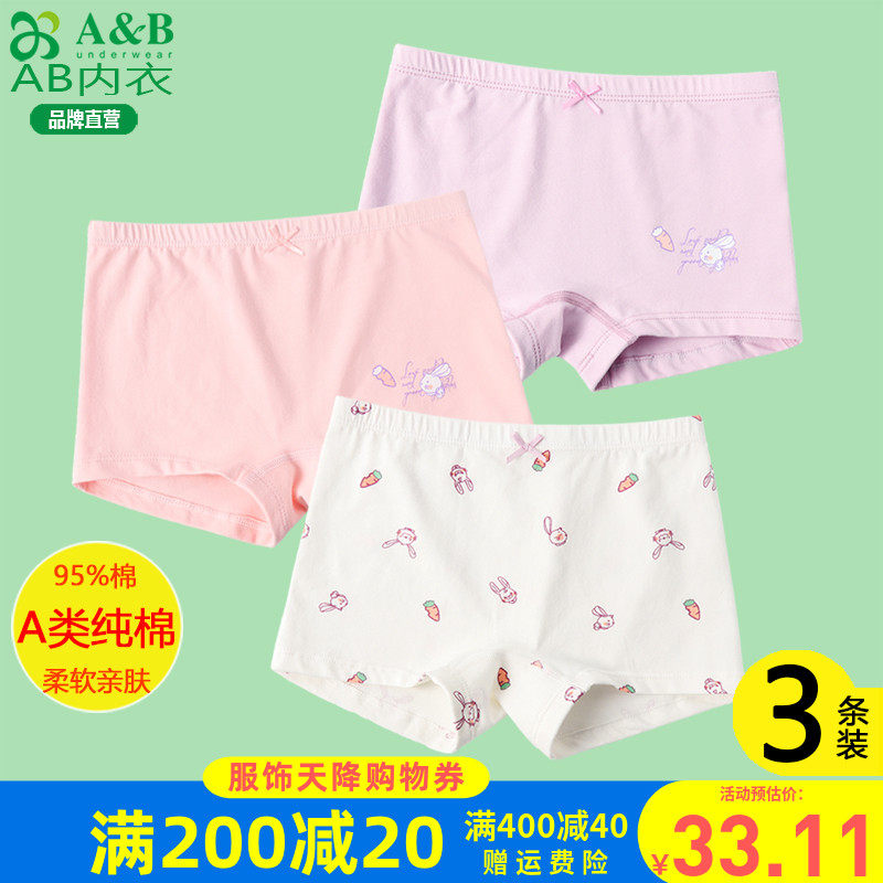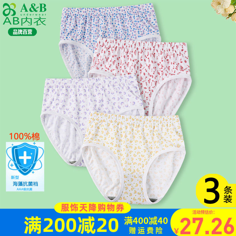 AB内衣 专柜正品 纯棉内裤 学生内裤 女童三角裤 ab儿童内裤3082