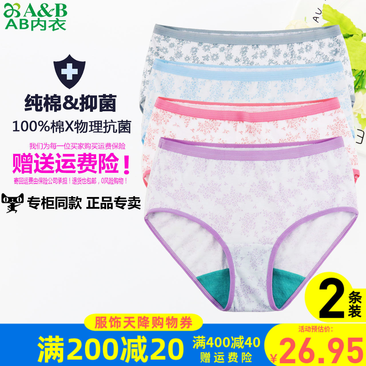 4条包邮 AB内衣 专柜正品 AB纯棉内裤 舒适女士中高腰三角裤 2822