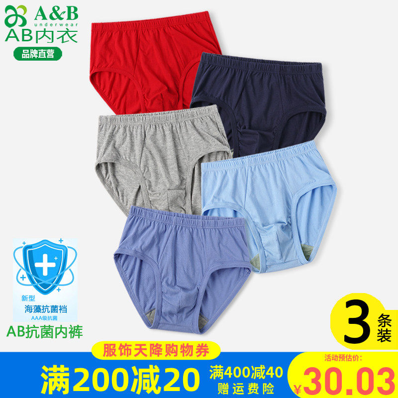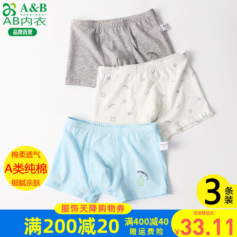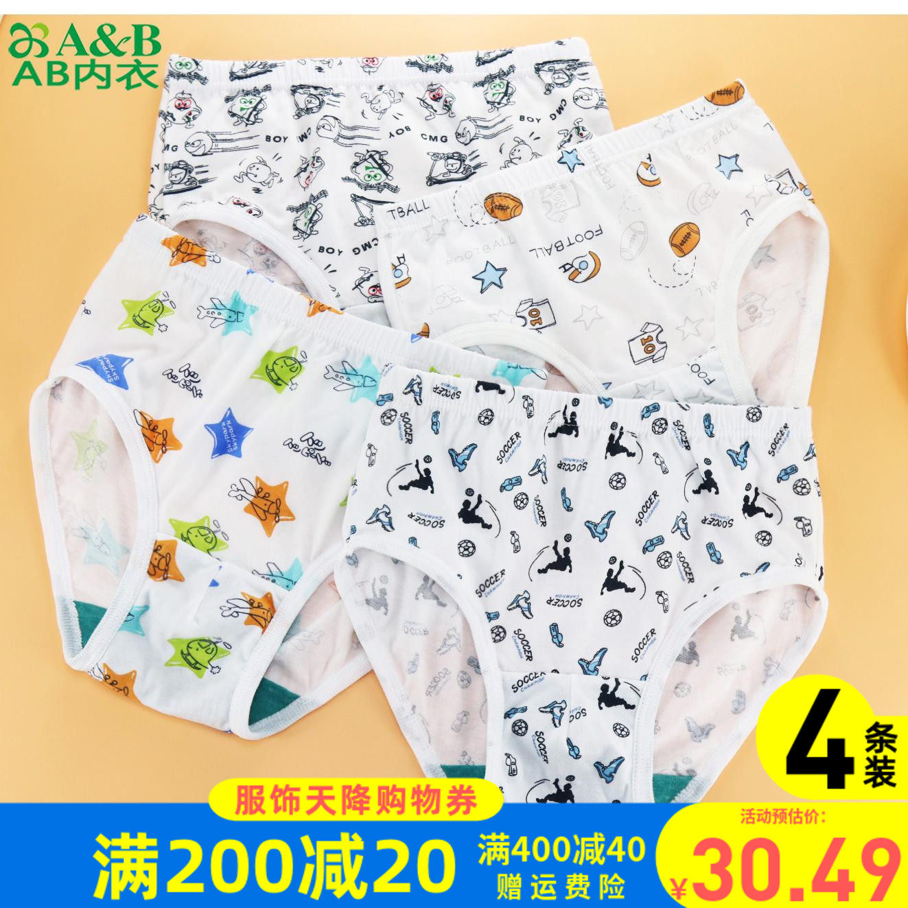 4条装 AB内衣纯棉男童短裤全棉中大童青少年学生三角裤内裤3092