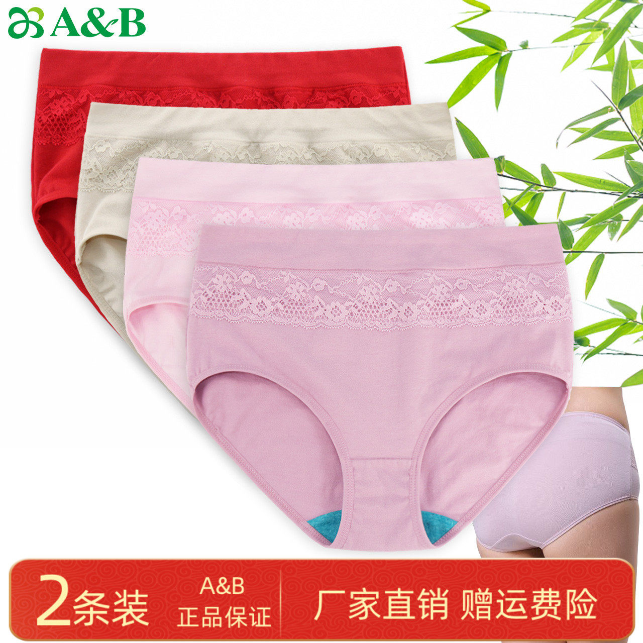 2条装 AB内裤女纯棉弹力中高腰抗菌蕾丝妈咪裤舒适小平角裤0116