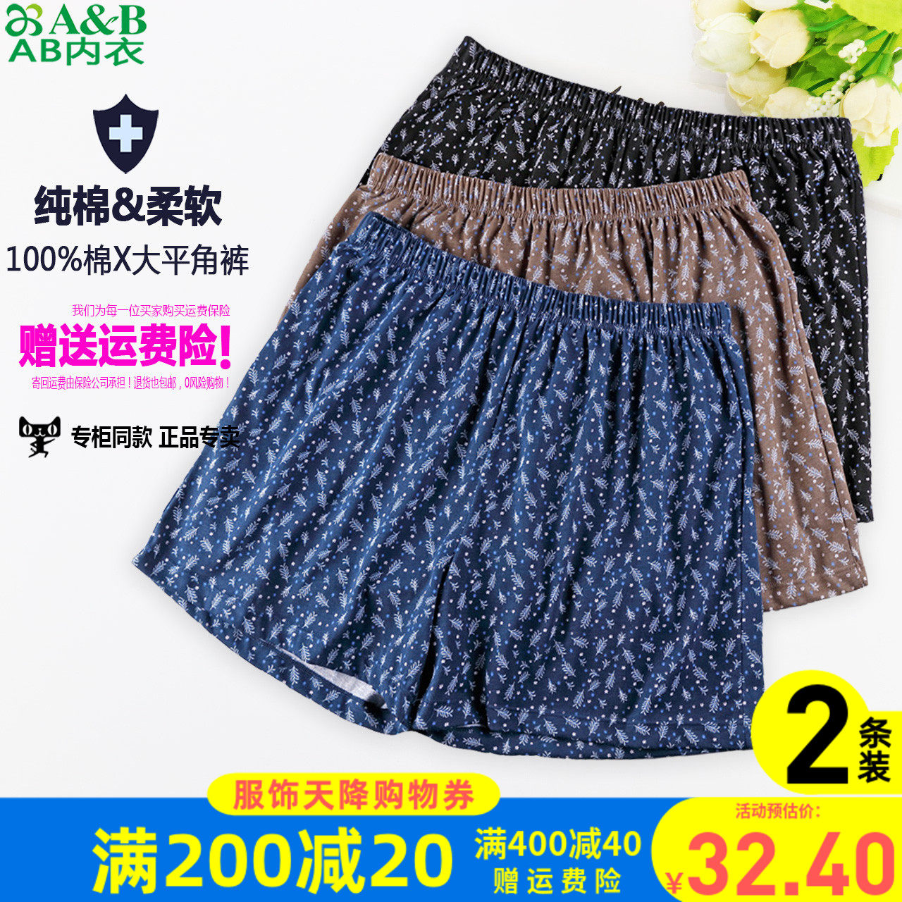 ab内裤【2条装】纯棉印花男士平脚裤高腰宽松大码四角裤头L611