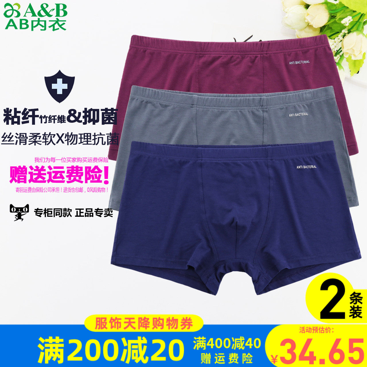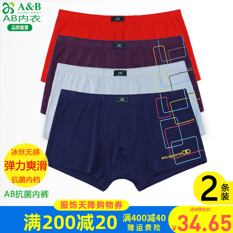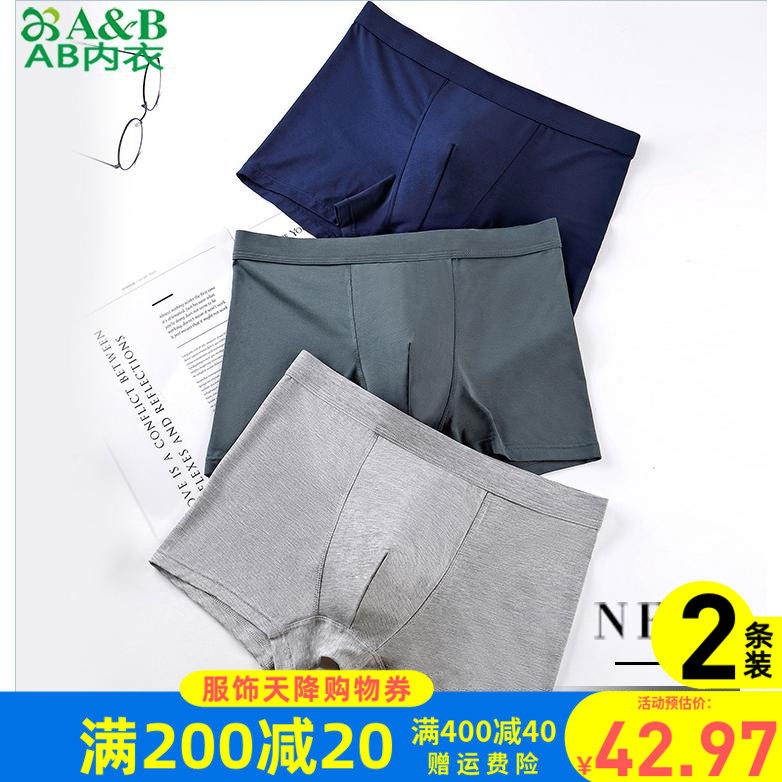 [2条装]AB内衣男粘纤无痕抗菌柔软透气U凸四角裤头平角内裤Y733