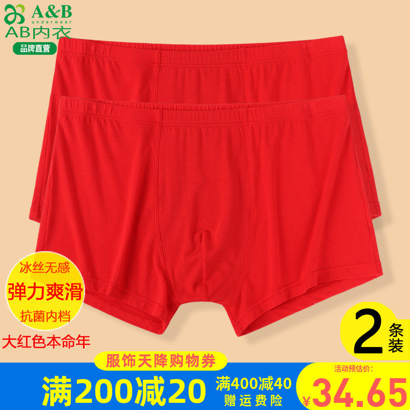 ab男大红本明年抗菌内裤薄冰丝透气短裤衩中腰男士弹力平角裤Y209