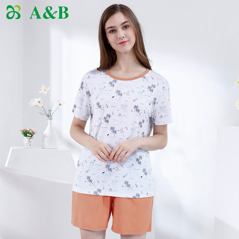 ab内衣女士家居服套装弹力印花宽松短袖短裤居家休闲起居服XT28