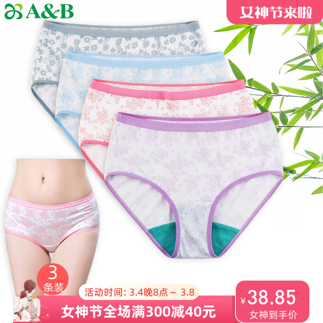 ab内裤【3条装】女士纯棉印花高腰抗菌青中老年三角短裤妈咪L630